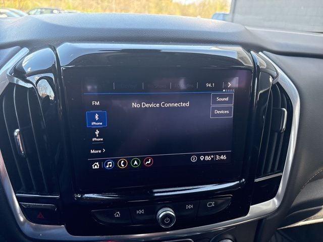 - Audio system, Chevrolet Infotainment 3 Premium system with connected Navigation, 8" diagonal HD color touchscreen, AM/FM stereo, Bluetooth® audio streaming for 2 active devices, Apple CarPlay and Android Auto capable, enhanced voice recognition, additional memory for in-vehicle apps, cloud connected personalization for select infotainment and vehicle settings. Subscription required for enhanced and connected services after trial period