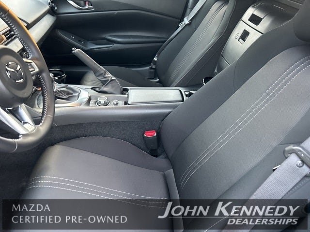 John Kennedy Ford of Conshohocken is proud to offer this beautiful 2024 Mazda MX-5 Miata in Jet Black This vehicle has passed our comprehensive inspection and comes with the following features; **MAZDA CERTIFIED PRE OWNED**, **ONE OWNER**, **LOW MILES**, 4-Wheel Disc Brakes, ABS brakes, Air Conditioning, Alloy wheels, AppLink/Apple CarPlay and Android Auto, Brake assist, Bumpers: body-color, Convertible roof wind blocker, Driver vanity mirror, Electronic Stability Control, Exterior Parking Camera Rear, Four wheel independent suspension, Glass rear window, Illuminated entry, Leather Shift Knob, MAZDA CONNECT Infotainment System, Outside temperature display, Panic alarm, Power door mirrors, Radio data system, Radio: AM/FM Sound System, Rear window defroster, Remote keyless entry, Speed-sensing steering, Sport steering wheel, Steering wheel mounted audio controls, Tachometer, Telescoping steering wheel, Tilt steering wheel, Trip computer, Variably intermittent wipers, Wheels: 16 x 6 Metallic Black Alloy Wheel Design. RWD Certified.