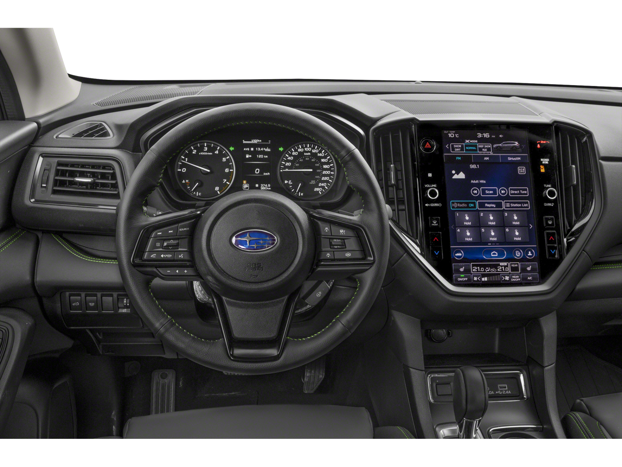 - Radio: Subaru STARLINK 11.6" Multimedia Plus System -inc: AM/FM stereo HD Radio, multi-touch gesture high resolution display screen, voice activated controls, Bluetooth® audio streaming and hands-free phone connectivity w/SMS text messaging connectivity (refer to subaru.com for cell phone compatibility), Near Field Communication (NFC), iPod control capability, SiriusXM All Access radio (4 months free trial/subscription required after), SiriusXM Travel Link (4 months free trial/subscription required after), smartphone integration for Android Auto and Apple CarPlay w/full screen view and wireless connection and STARLINK cloud applications, USB and Over The Air (OTA) audio system update, steering wheel control switches for audio and Bluetooth®, 6 speakers, 3.5mm illuminated auxiliary input jack and illuminated USB A and C input/charge ports